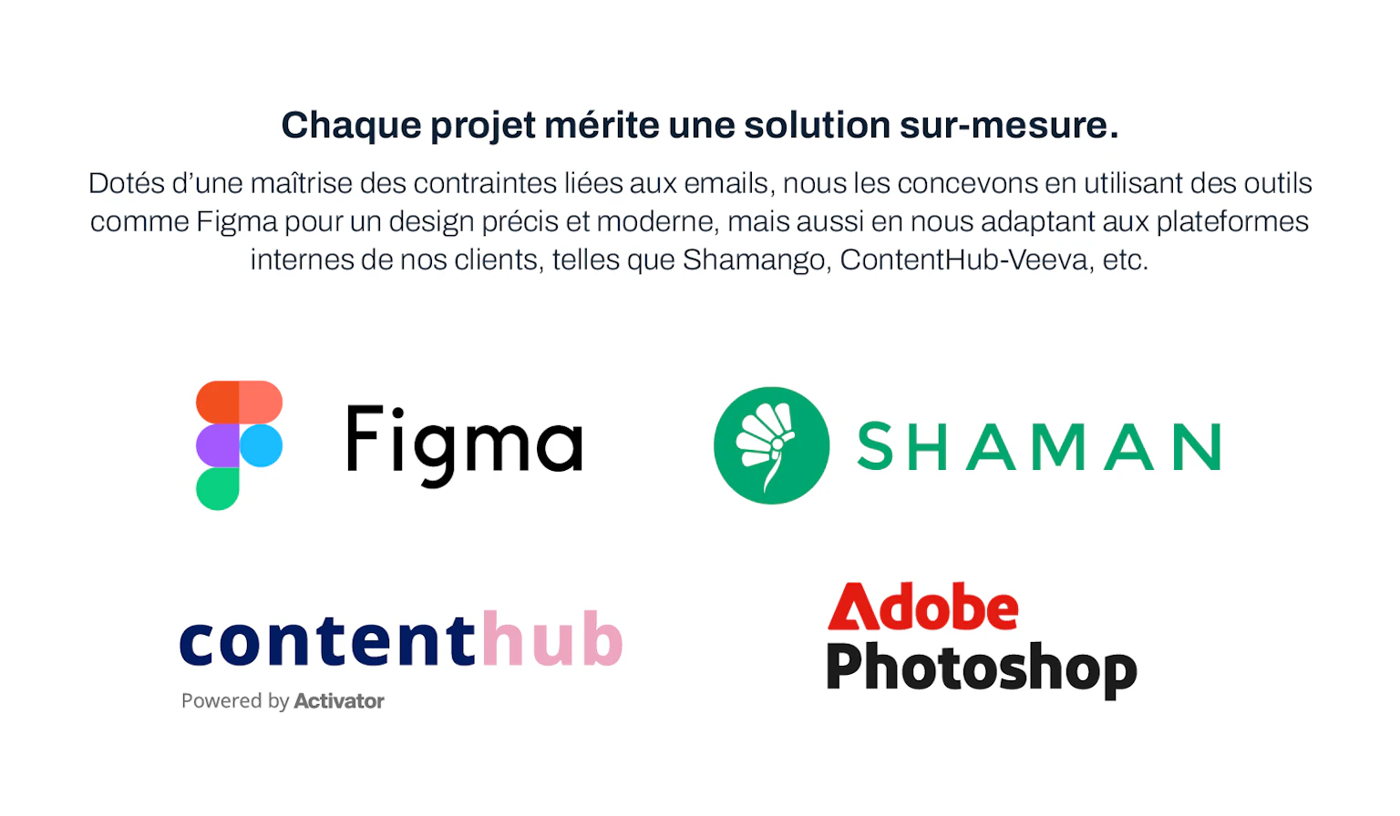 Nos concepts sont réfléchis de manière “responsive” car, tout en gardant une identité forte, ils peuvent changer de forme et s’adapter à tous types de supports, print ou digitaux.