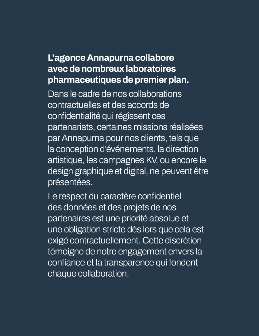 Nous sommes (presque) tolérants sur l'heure d'envoi d'un sms ou sur la quantité d’emails reçus - rappelés - et re reçus. Si votre projet tombe dans nos mains, il finira par marcher au pas, et même si nous aimons quand tout roule, les budgets, les plannings, le suivi, chez Annapurna c'est carré !