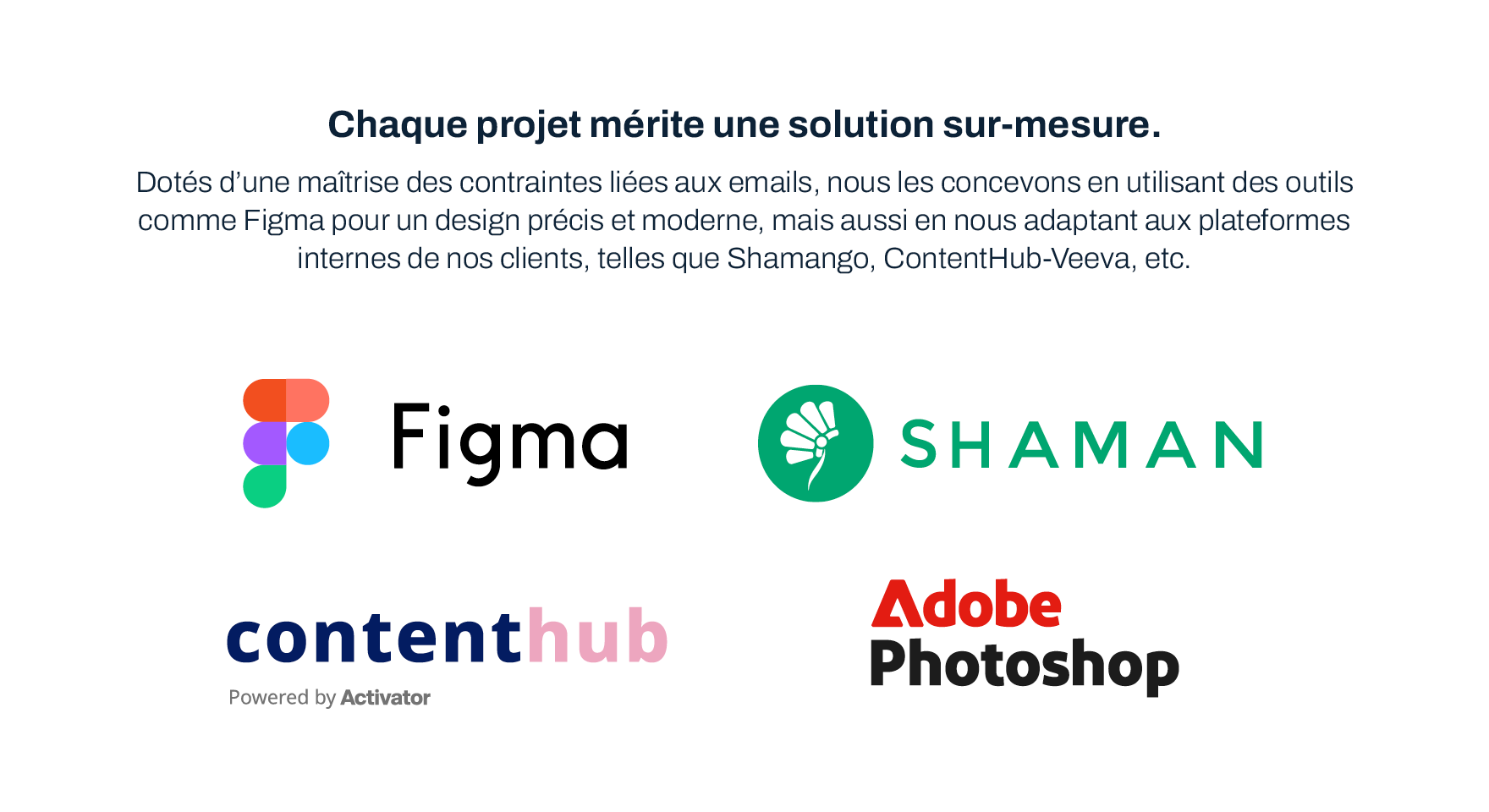 Nos concepts sont réfléchis de manière “responsive” car, tout en gardant une identité forte, ils peuvent changer de forme et s’adapter à tous types de supports, print ou digitaux.